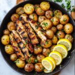 This Chicken and Potato Skillet is a delicious and hearty one-pan meal featuring tender marinated chicken breasts and golden seared baby potatoes. Perfectly seasoned and cooked together in a skillet, it offers a balance of savory, tangy, and slightly spicy flavors, garnished with fresh parsley and served with refreshing lemon wedges.