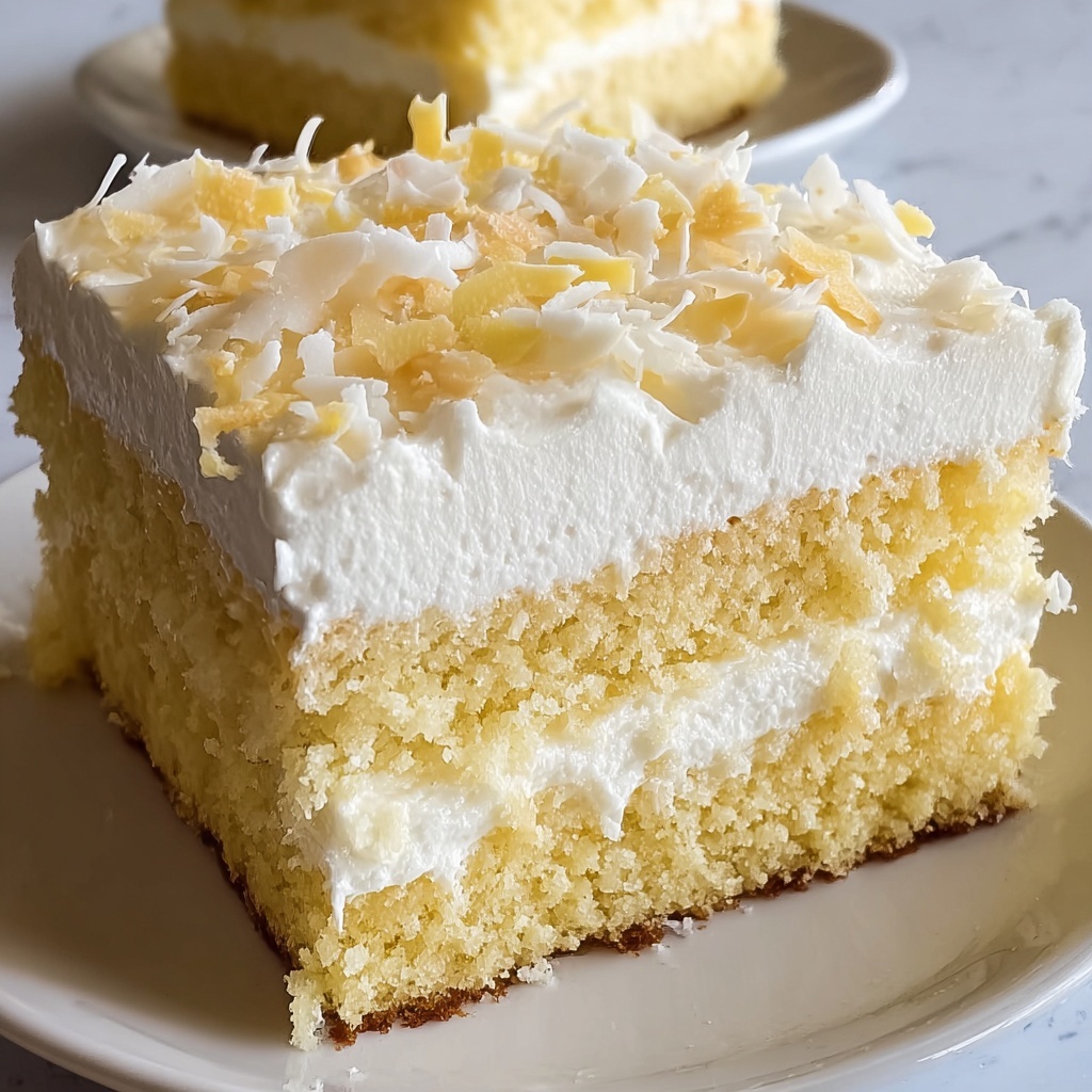 To elevate this Coconut Cream Cake Recipe, top it with a light dusting of powdered sugar or extra shredded coconut for a pretty finish. Fresh pineapple slices or toasted coconut flakes work wonderfully too, adding extra texture and a pop of tropical flair.