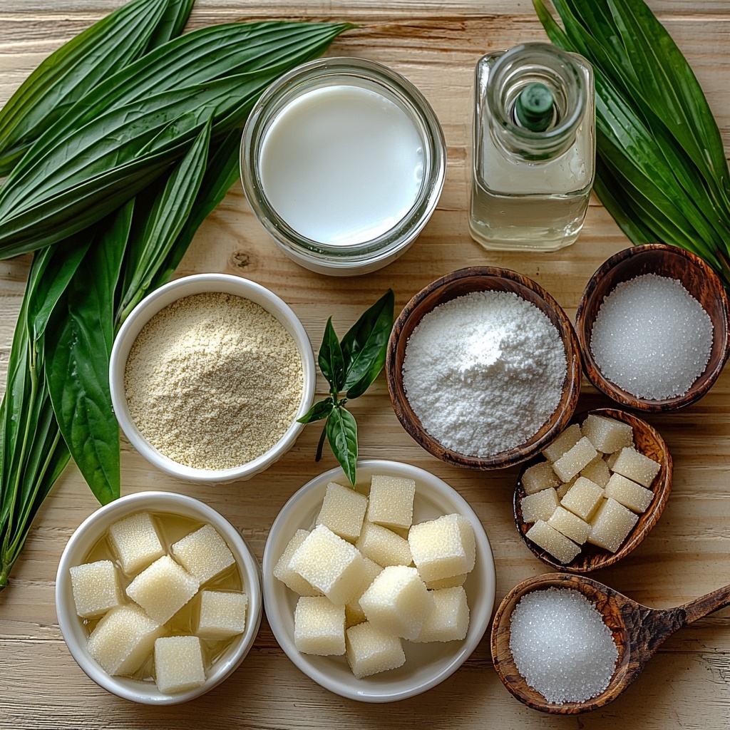 - Pandan extract (1 teaspoon): Adds enchanting green color and natural fragrance.