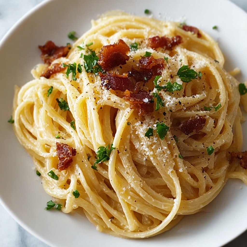 Serve this carbonara in rustic bowls for a cozy vibe, or if you’re entertaining, plate it elegantly with carefully placed curls of parmesan and edible flowers for a stunning, restaurant-worthy appearance. Mini portions on tasting spoons make fun party bites, showcasing the recipe’s versatility.