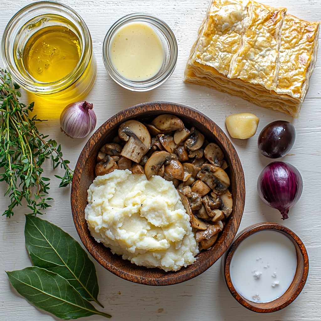 This recipe uses simple, accessible ingredients that come together to create incredible depth and comforting textures. Each element plays a key role, from the aromatic onions to the creamy mashed potatoes and the flaky pastry crust. Let’s talk about what you’ll need and why they matter!