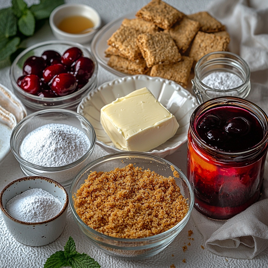 The magic behind this No-Bake Cherry Pie Recipe is in its simple, well-chosen ingredients. Each one plays a crucial role in building the perfect balance of texture, sweetness, and fresh cherry flavor. Let’s take a look at what you’ll need to create this show-stopping dessert.