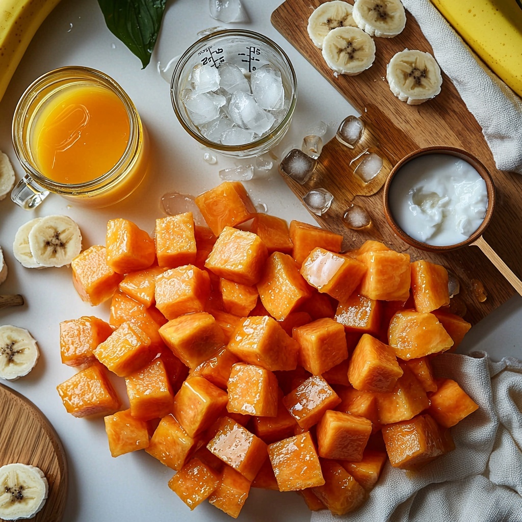 For this Papaya Sunrise Smoothie Recipe: 6 Steps to Pure Bliss Recipe, the ingredients are wonderfully simple yet essential. Each item adds a unique flavor, texture, or color that makes the smoothie unforgettable. From the ripe, juicy papaya to the creamy coconut milk, every component plays a starring role.