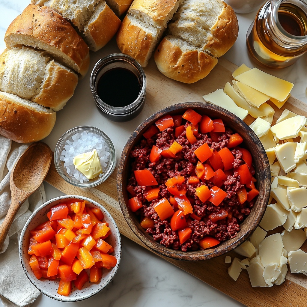 These ingredients are wonderfully straightforward but each brings something essential to Philly Cheese Steak Sloppy Joes: A Tasty Twist on Comfort Food Recipe. From the savory depth of ground beef to the melty stretch of provolone, every component plays its part in delivering that perfect blend of flavors, textures, and colors.