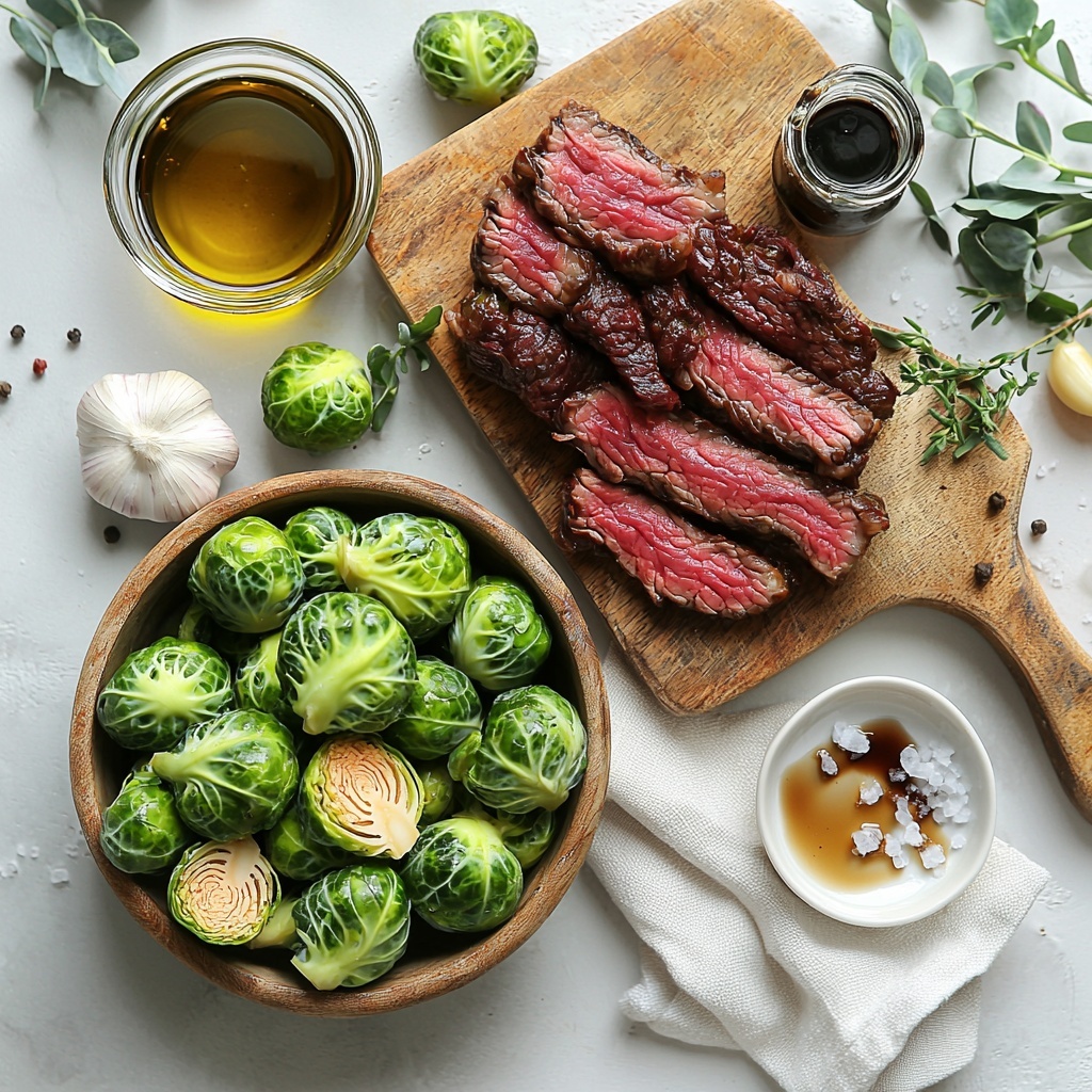 This recipe uses a handful of straightforward ingredients that each play a crucial role in building layers of flavor, texture, and color. From the crisp-tender roasted Brussels sprouts to the juicy beef strips enhanced with garlic and balsamic vinegar, every component is essential to creating the perfect harmony of tastes.