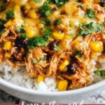 - Assemble and garnish: Serve the shredded chicken mixture over the rice or quinoa, then top with shredded cheese and sprinkle with chopped cilantro for freshness and added flavor.