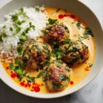 Return the browned meatballs to the skillet, nestling them carefully into the creamy sauce. Let them simmer gently for 10 to 15 minutes to ensure they are cooked through, tender, and infused with multiple layers of spice and coconut goodness. The sauce will thicken nicely as it cooks, clinging deliciously to each meatball.