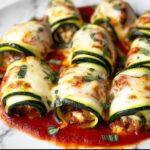 This delicious Zucchini Rollatini recipe features thinly sliced zucchini filled with a savory mixture of ricotta cheese and Italian sausage, baked to perfection with marinara sauce and melted mozzarella. A low-carb, flavorful dish perfect for a comforting dinner.